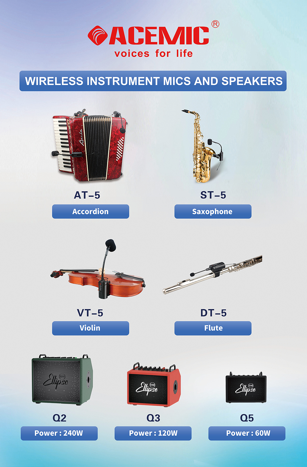 Q3 – 120W Music Speaker System for Musical Instrument | Compact Power, Professional SoundExperience rich, detailed sound with the AceSound Q3, a 120W music speaker system designed to elevate your performance. Whether you're a guitarist, keyboardist, or multi-instrumentalist, this compact yet powerful music speaker system delivers exceptional clarity and responsiveness for every note you play.