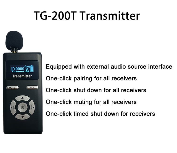 DetailModel: TG-208NTotal: 8PCS (1PC Transmitters, 7PCS Receivers), Type-C Charging Cable